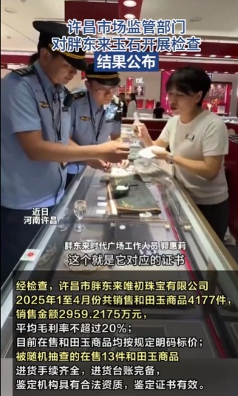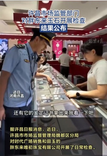 许昌市市场监管局对胖东来玉石开展检查,结果公布